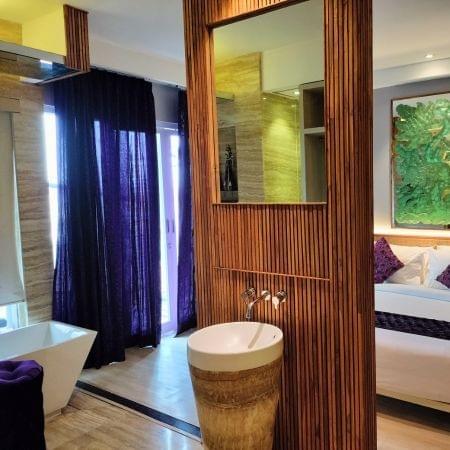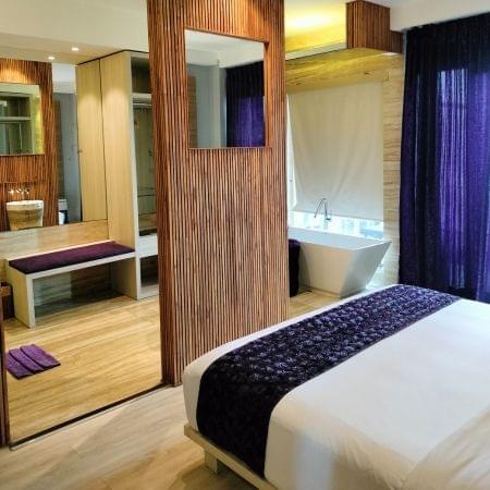 Retreat into luxury within your private en-suite bathroom, a true sanctuary for relaxation. Indulge in a rejuvenating rinse in the spacious walk-in shower or surrender to a long, blissful soak in the deep bathtub. Every detail in the Deluxe Room is thoughtfully curated to provide a seamless blend of functionality, space, and serene comfort, promising a truly restorative and memorable experience for every guest.