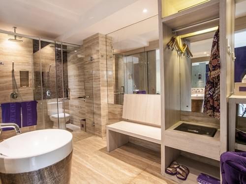Retreat into luxury within your private en-suite bathroom, a true sanctuary for relaxation. Indulge in a rejuvenating rinse in the spacious walk-in shower or surrender to a long, blissful soak in the deep bathtub. Every detail in the Deluxe Room is thoughtfully curated to provide a seamless blend of functionality, space, and serene comfort, promising a truly restorative and memorable experience for every guest.